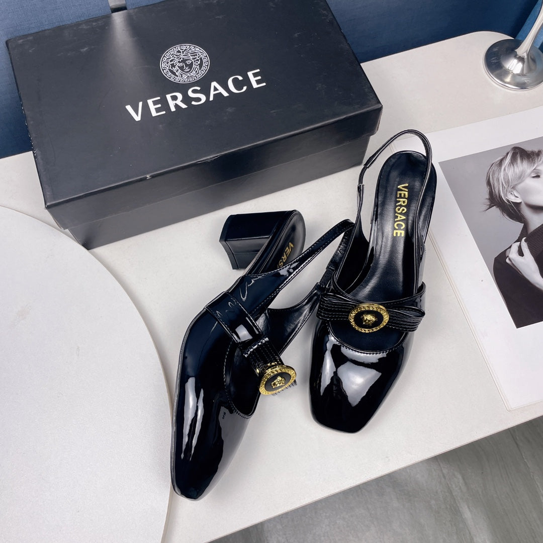 Square-toe block heel Mary Jane